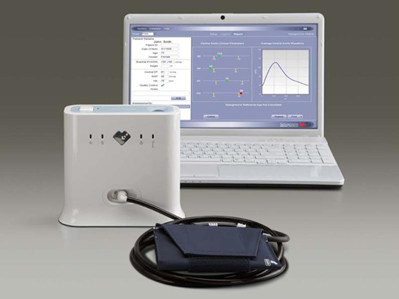 Consente le misurazioni in sequenza sia delle Pressioni Arteriose periferiche (brachiali), sia di quelle Centrali Aortiche (PWA, Augmentation Index, Aortic Central Pressures etc) tramite un particolare bracciale.